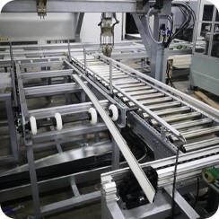 输送线主要是完成物料的输送任务,存在于环绕库房、生产车间和包装车间等场地,设置有由许多皮带输送线、滚筒输送线等组成的一条条输送链,经首尾连接形成连续的输送线,保障货物的快速、平稳输送。