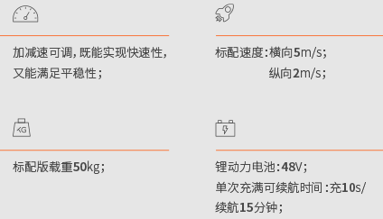 用于处理料箱类物料,适用于较小载重、灵活储运的货物